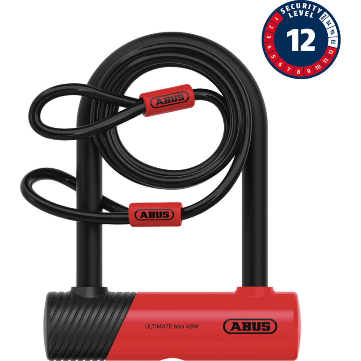 Abus Ultimate Mini 420K|150HB140 U formos spyna su USH laikiklius + Cobra™ 10|120 trosas | Black - Red