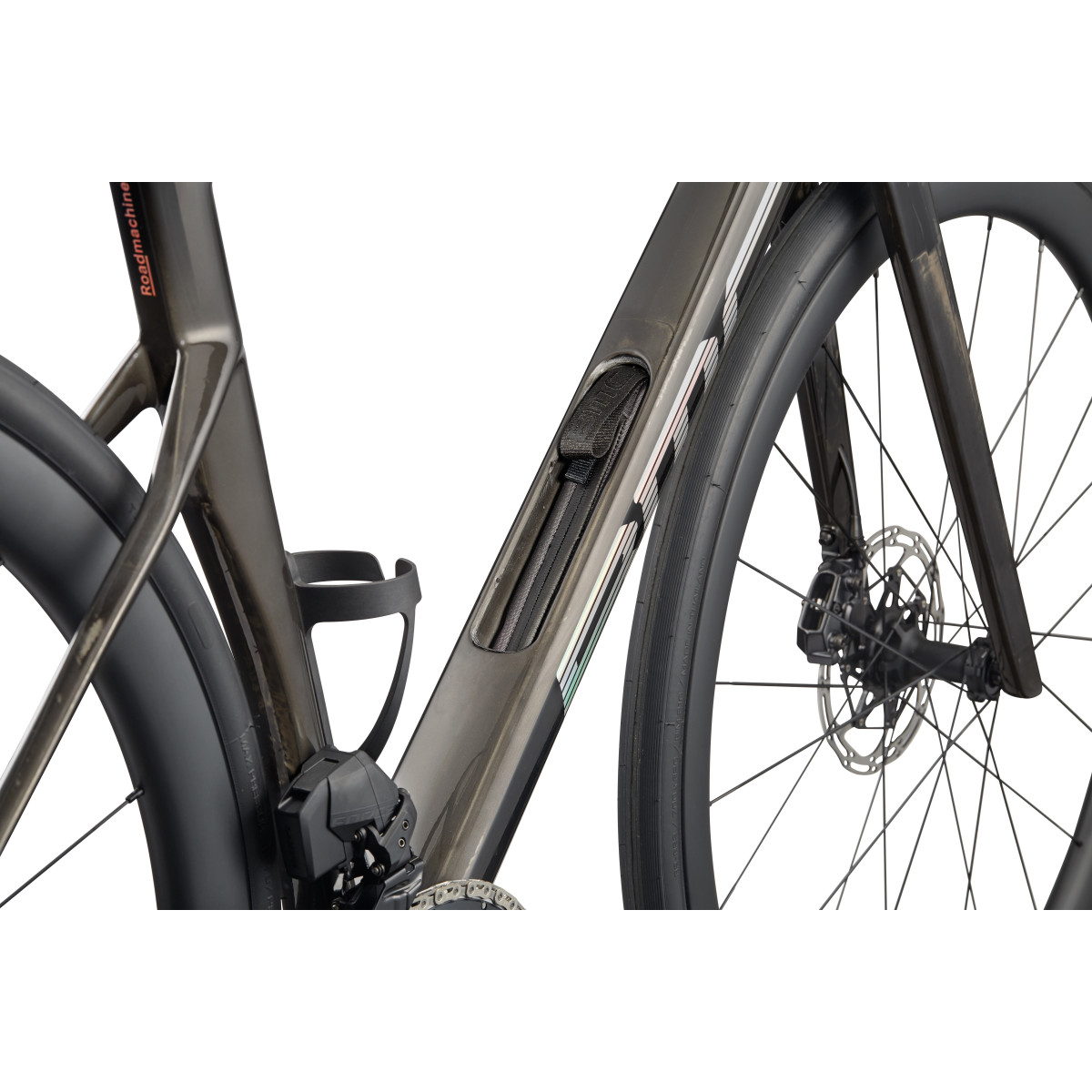 - Downtube storage sistema: integruota laikymo vieta rėme su specialiu maišeliu būtiniausiems daiktams